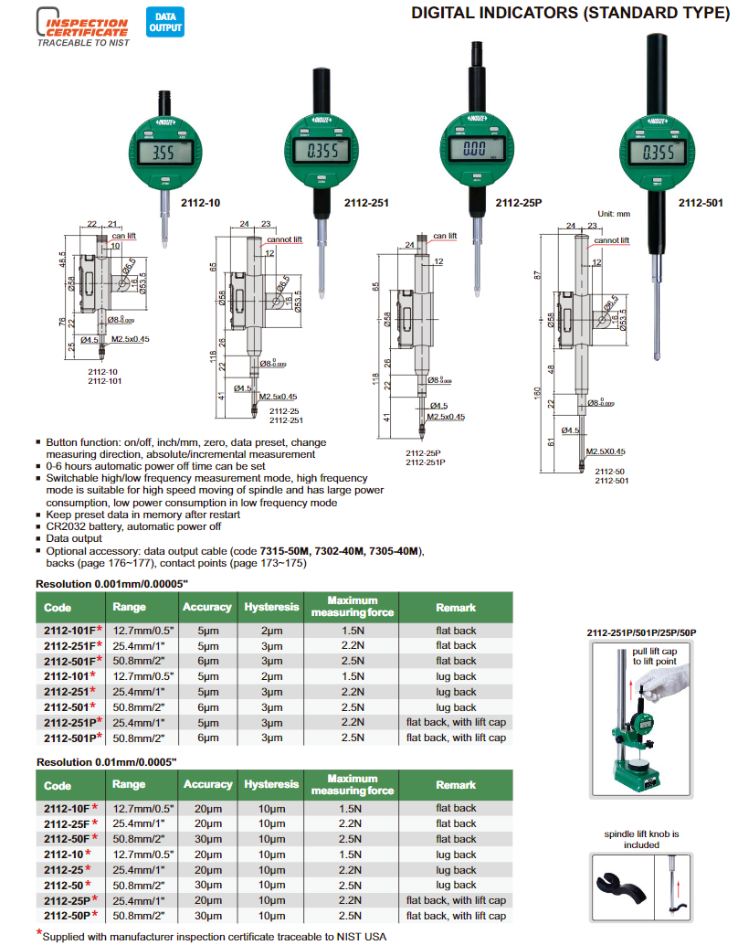 Digitaalne indikaatorkell 0-25.4 mm 0.01mm/0.0005" d=58 mm 2112-25 INSIZE