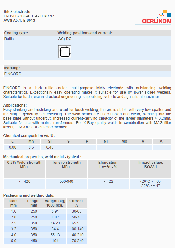 FINCORD is a thick rutile coated multi-purpose MMA electrode.