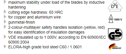 VDE insulated up to 1000V, according to EN 60900/IEC 60900:2004