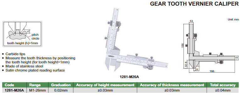 Gear Tooth vernier Caliper M1-26mm 1281-M26A INSIZE