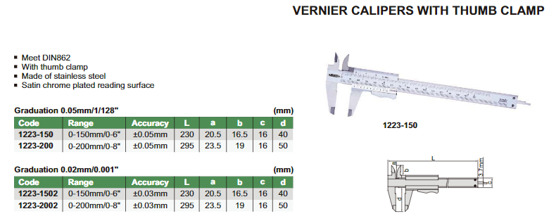 Vernier caliper 150x40mm 0.05mm/1/128'' INOX DIN862 INSIZE 1223-150