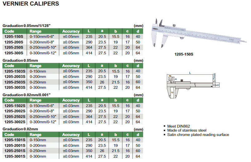 Vernier caliper 200x50mm 0.05mm/1/128'' INOX DIN862 INSIZE 1205-200S