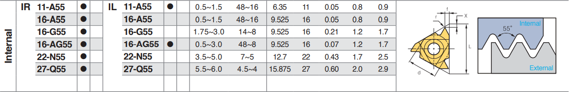IR16-AG55 PC3030T KORLOY