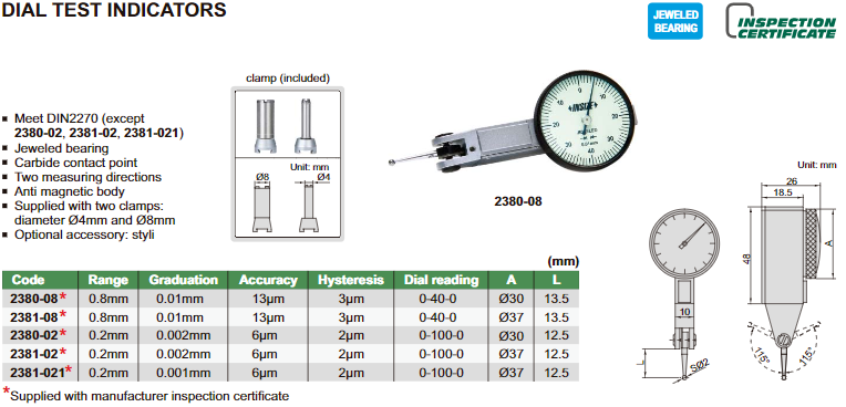 Kangindikaator 0-0.80mm 0.01mm d=30mm 2380-08 INSIZE