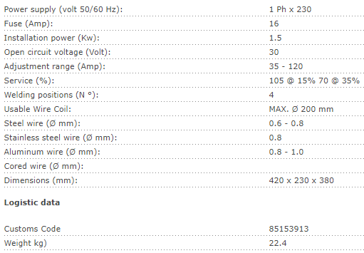 welding NO GAS: welding with a special selfshielded wire and no gas protection is needed. This system is suggested to obtain hight welding penetretation.It is ideal for outdoor welding.