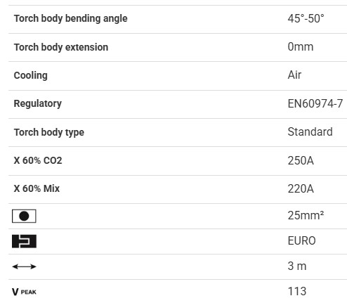 Keevituspõleti MIG 24/3m Ergoplus 250A@60% (0.8-1.2) TRAFIMET MA4201-030