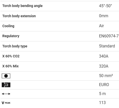 Keevituspõleti MIG 36/5m Ergoplus 340A@60% (0.8-1.6) TRAFIMET MA4204-050