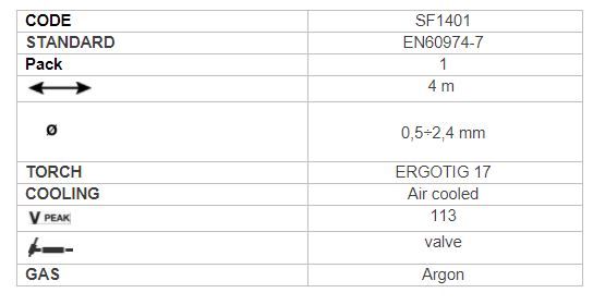 Keevituspõleti TIG 17/4m ERGOTIG 140A-DC/125A-AC M12x1 TRAFIMET SF1401