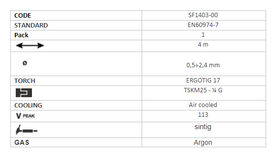 Keevituspõleti TIG 17/4m ERGOTIG TSKM25-1/4G TRAFIMET