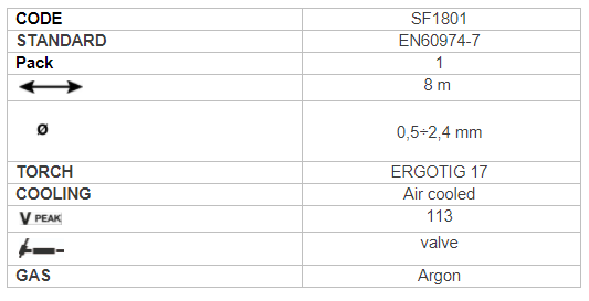 Keevituspõleti TIG 17/8m ERGOTIG 140A-DC/125A-AC M12x1 TRAFIMET
