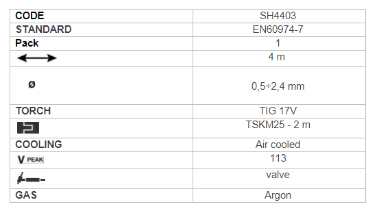 Keevituspõleti TIG 17V/4m TSKM 251/4G+2m gas tube TRAFIMET
