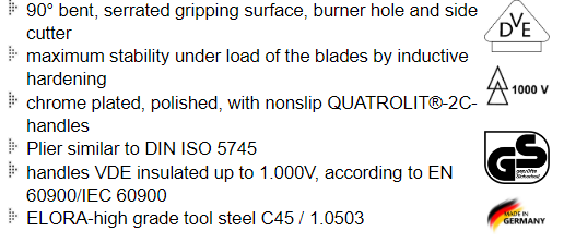 Lapiktangid VDE 1000V 90° 205mm No.935-90 ELORA