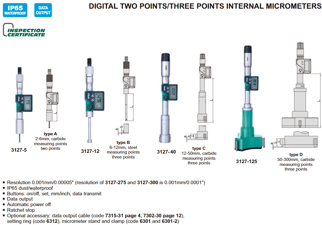 Digital internal micrometer set 50-100mm/4pcs IP54 INSIZE 3127-1004
