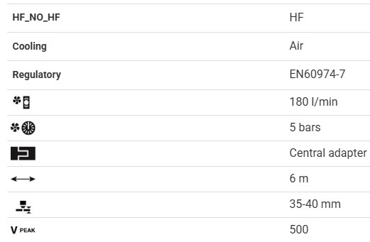Automatic ergocut torch, with HF, available in the range of 50A and 150A at 60%. Also available in the water-cooled version at 200A at 100%. Trafimet consumables.