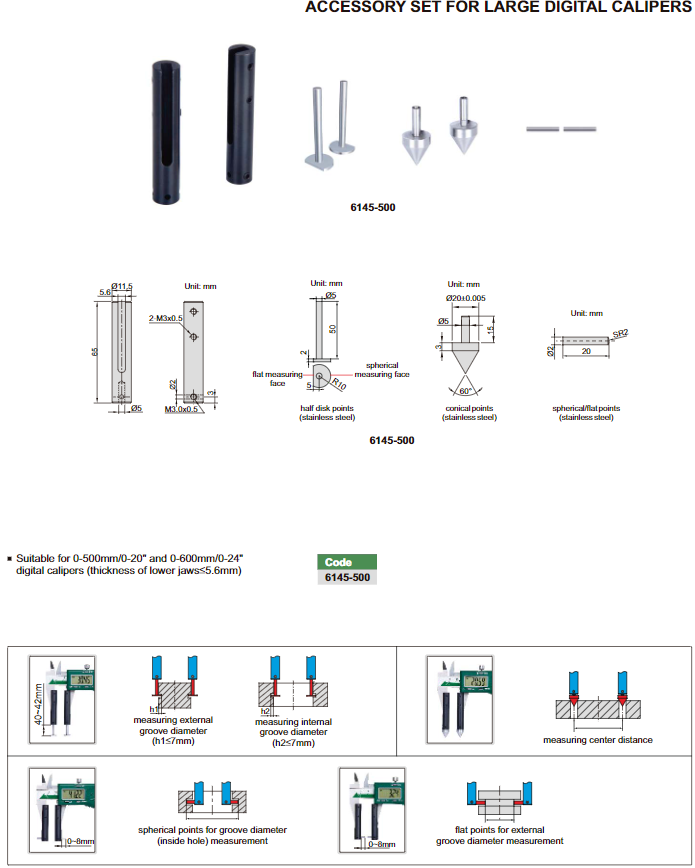 Набор принадлежностей для болших дигитальных штангенциркулей INOX INSIZE 6145-500