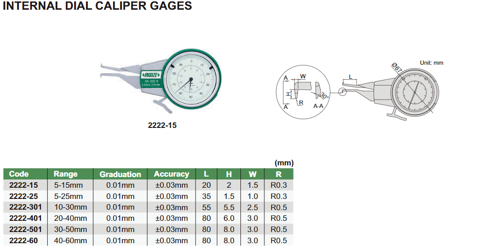 Нутромер 5-15 mm L=20mm 0.01 mm 2222-15 INSIZE