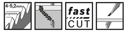 - Крупный прогрессивный шаг зубьев (4–5,2 мм) полотна позволяет пилить различные древесные материалы толщиной 5–50 мм