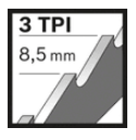 Зубья фрезерованные, разведённые,шаг 8.5 мм / 3TPI. Длина полотен 225 мм, ширина 19 мм, толщина 1.25 мм