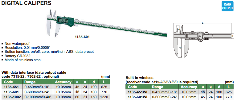 Штангенциркуль Дигитальный 600x100mm 0.01mm/0.0005'' INSIZE 1135-601