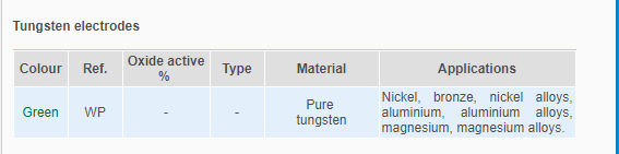 TIG welding nichel, bronze, nichel alloys,aluminium, aluminium alloys, magnesium, magnesium alloys.