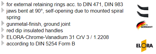 Stopperrõnga tangid välis/90° 85-165mm PVC-ga No.384-A41 ELORA